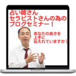 2021年10月9日 / 最終更新日時 : 2026年3月17日 gracedestiny_1202 ゲスト講師 【ZOOM】講師:松田健宏「占い師さん、セラピストさんの為のブログセミナー!あなたの良さは上手に伝えれていますか?」 開催日時:11月16日(火)10時~12時 開催場所:ZOOMリアル配信、または録画動画受講★当日参加の方も録画動画を配信させて頂きます。(視聴期間1ヶ月) 受講料:10000円★通常よりもお安くお願いしましたのでこの機 […]